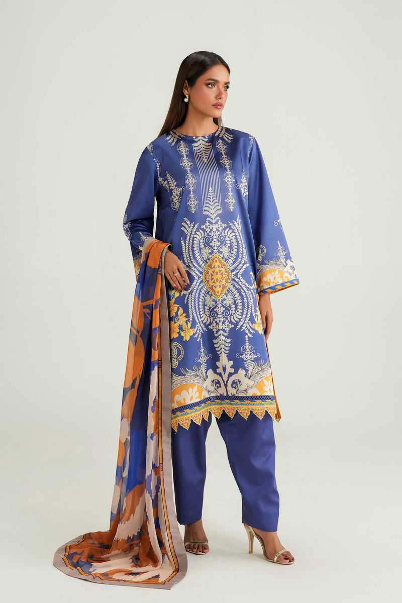 A classy pick for winter, this royal blue unstitched 3-piece ensemble features a mesmerizing digitally...