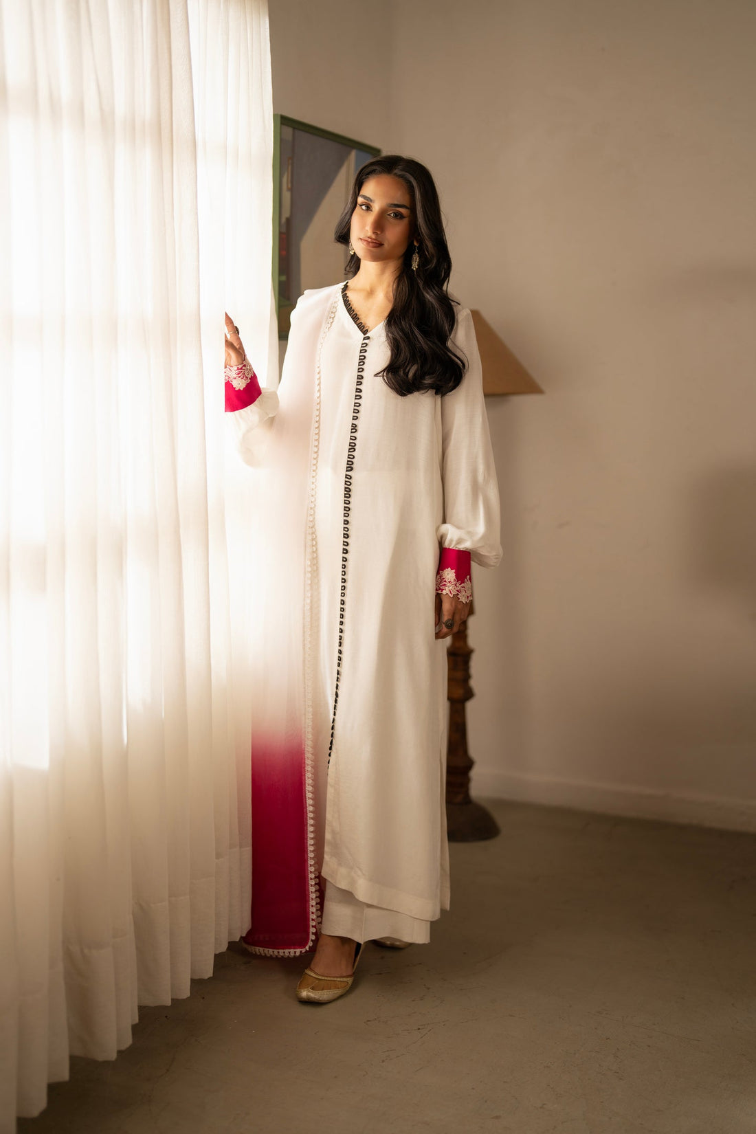 this stunning white raw silk shirt, designed to blend elegance with contemporary charm. The shirt...