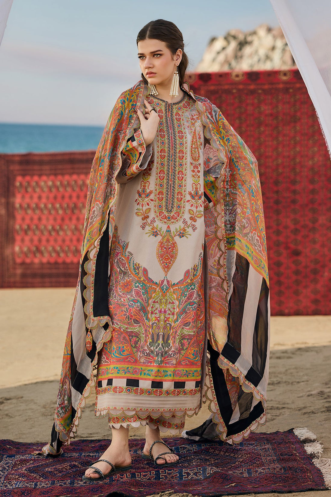 Printed Swiss Shirt 3 Meter Embroidered Front Neck 1 Pcs Embroidered Sleeves Patti 1.25 Meter...