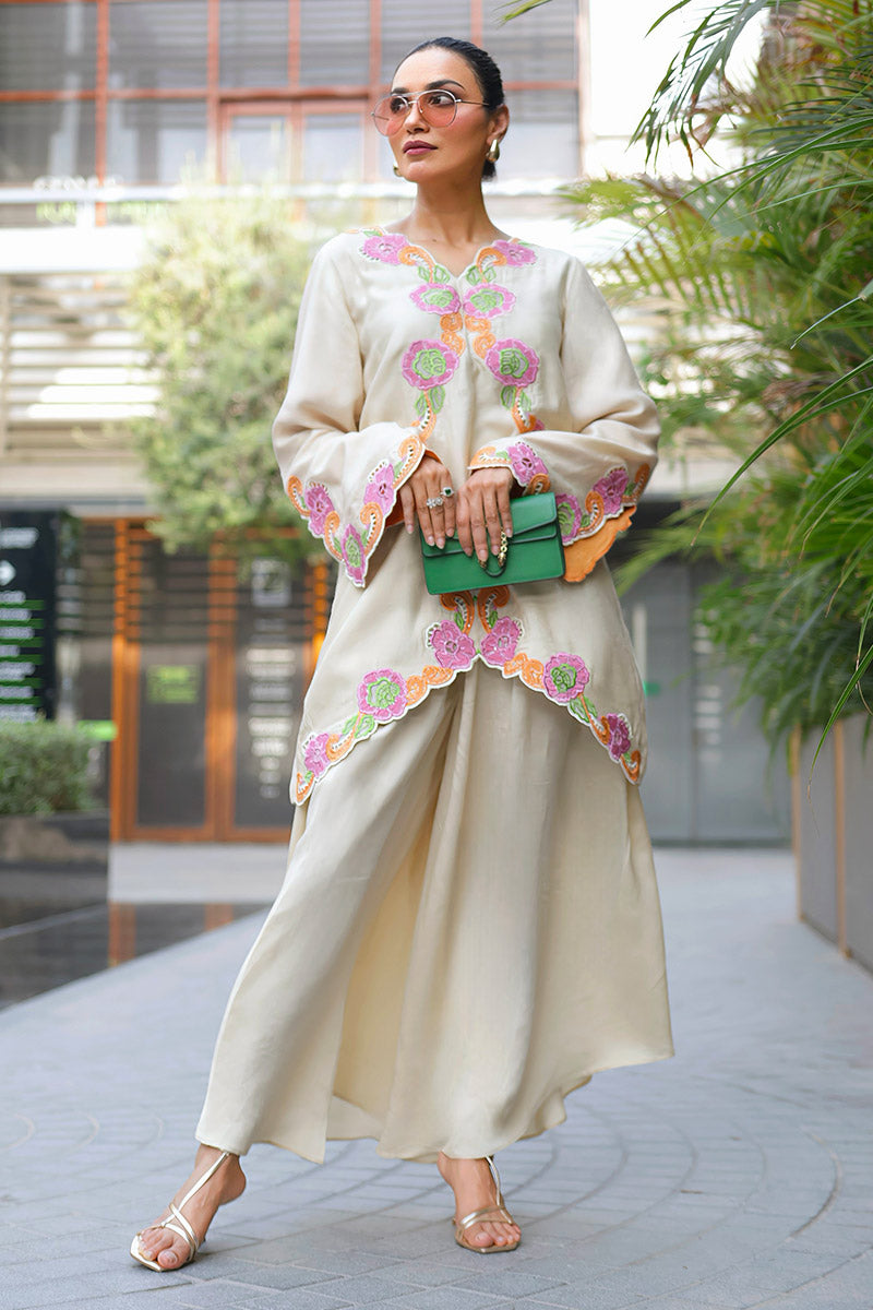 Elegant with a contemporary twist, Ivory Tangerine is a two-piece co-ord set featuring an ivory...