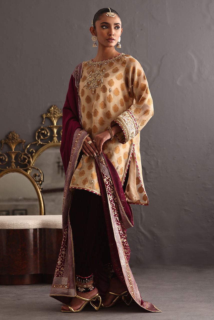 This three piece ensemble exudes grace and poise keeping the tradition intact. The short jacquard...