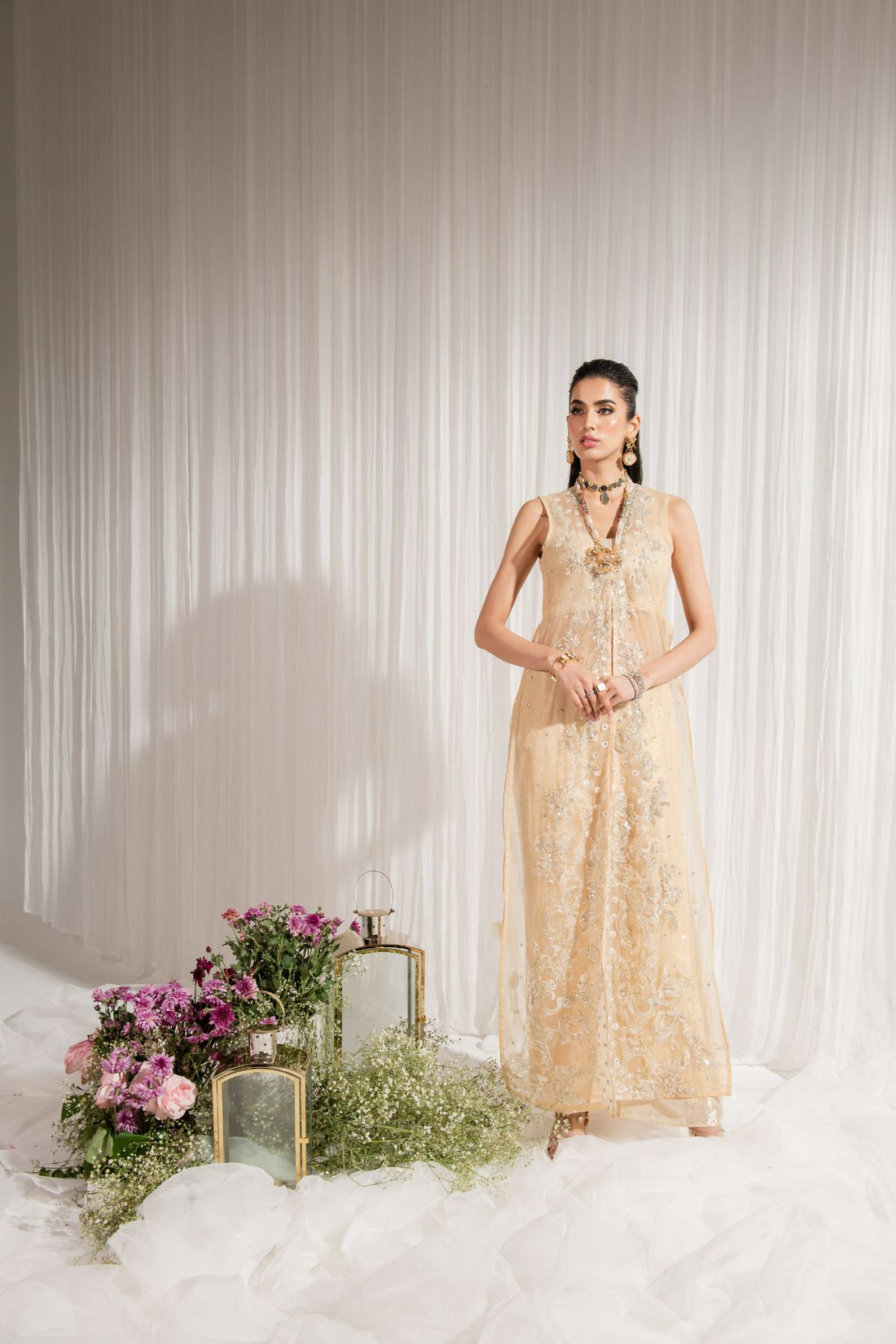Shirt Front:Sequins Embroidered Net 3 panelsShirt Back:Sequins Embroidered Net 3 panelsSleeves:Sequins Embroidered NetDupatta:Sequins Embroidered NetShirt...