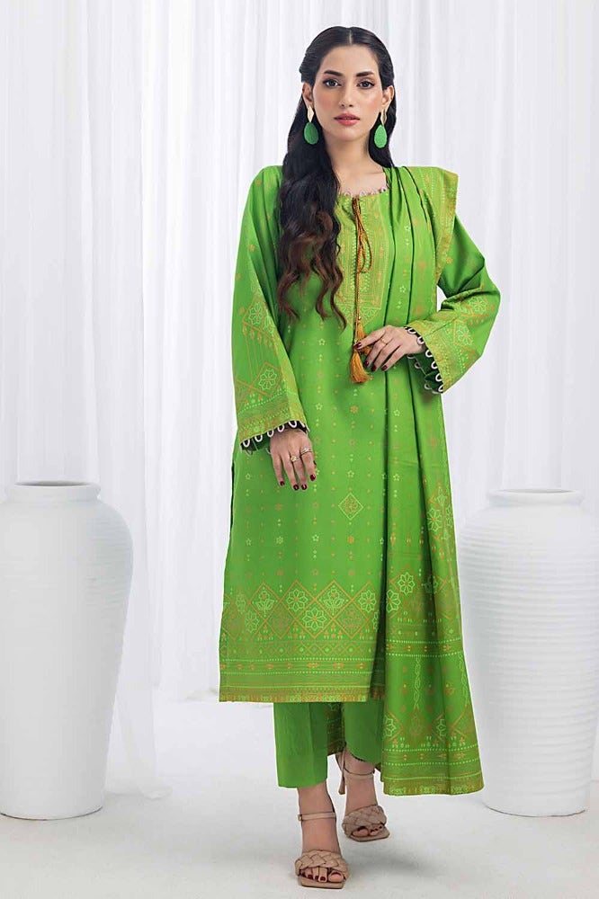 Gender: Women Color: Green Product Type: 3 Piece Shirt Fabric: Khaddar Dupatta Fabric: Net Trouser...
