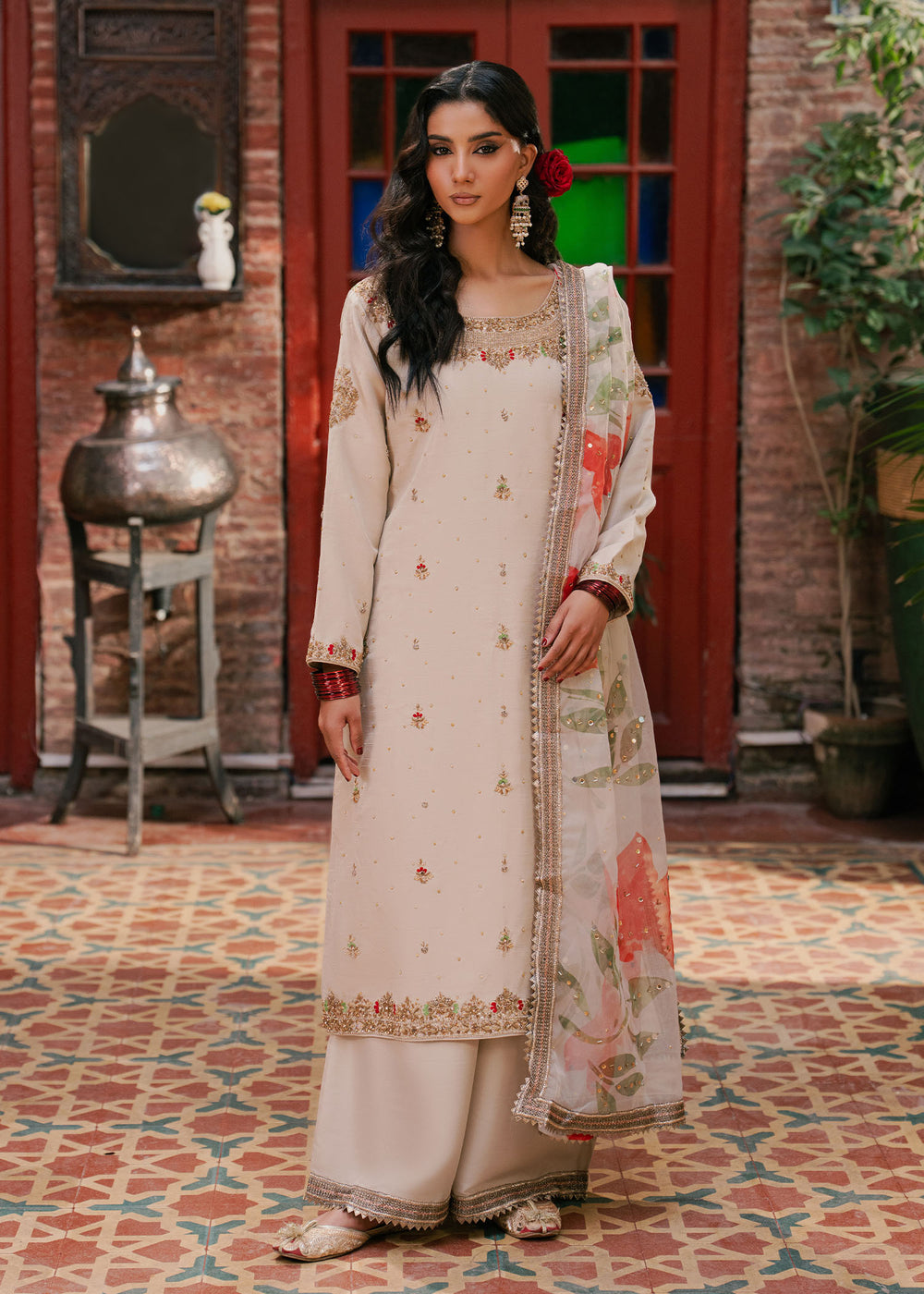 Mehrban reflects warmth, romance, and timeless femininity. Executed in a deep crimson shade, the ensemble...