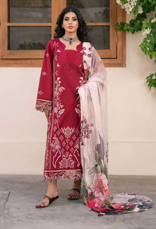 EMBROIDERED LAWN SHIRT EMBROIDERED SLEEVESEMBROIDERED ORGANZA BORDER-DAMANEMBROIDERED ORGANZA BORDER-SLEEVESPRINTED SLUB CHIFFON DUPATTA PLAIN DYED COTTON TROUSER Delivery:...