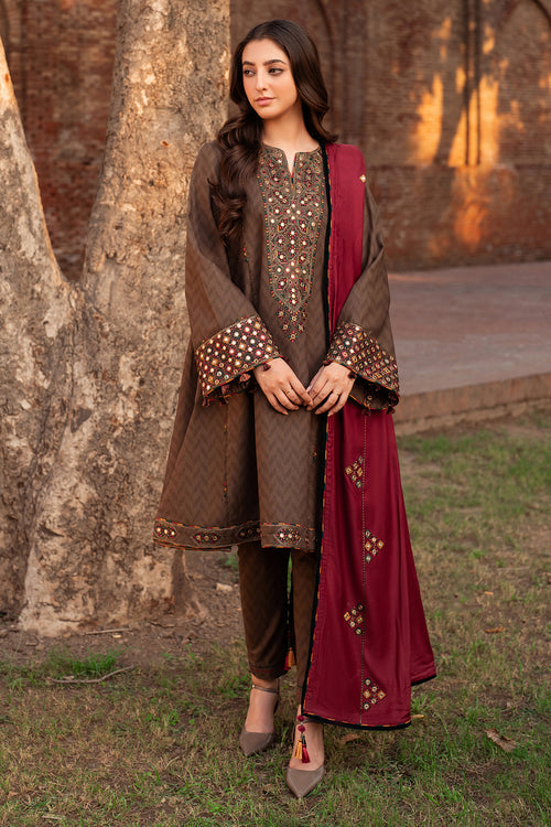 Embroidered Jacquard Khaddar Front PanelEmbroidered Jacquard Khaddar Sleeve BorderEmbroidered Jacquard Khaddar Front & Back BorderDyed...