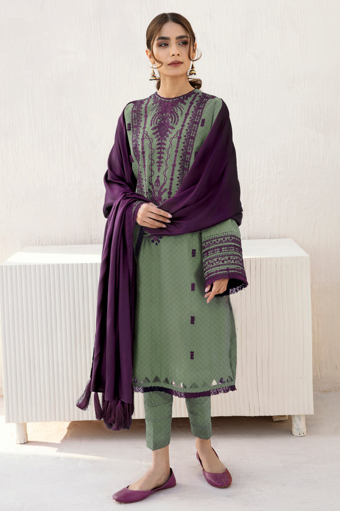 Embroidered khaddar Front PanelEmbroidered khaddar Left & Right PanelEmbroidered Sleeve BordersDyed khaddar Back & SleevesDyed...