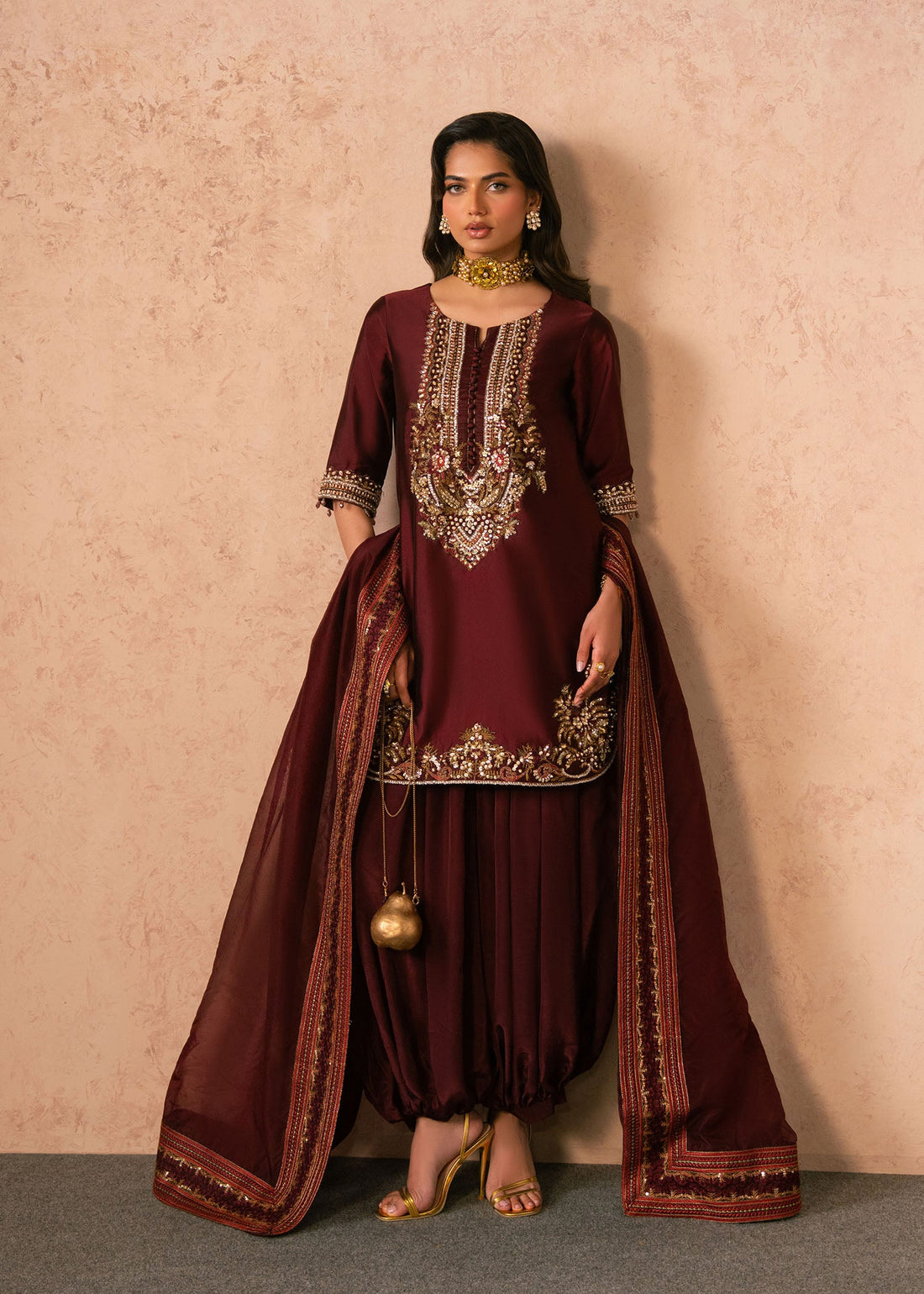 This outfit is a rich maroon traditional ensemble that beautifully blends regal charm with contemporary...