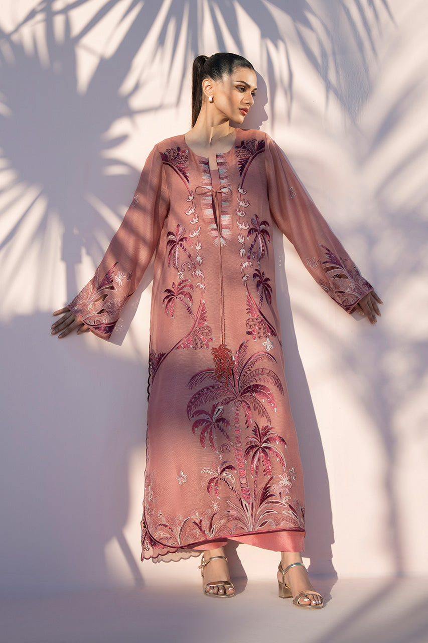 Delicately radiant, Mehrnaz unfolds in soft pink shades, exuding a feminine charm that’s both timeless...
