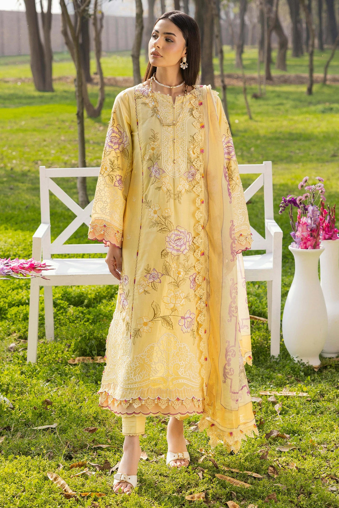 Embroidered Lawn Front Dyed Lawn Back Embroidered Lawn Sleeves Dyed Cotton Trouser Digitally Printed Bamber Chiffon Dupatta Delivery: 18...