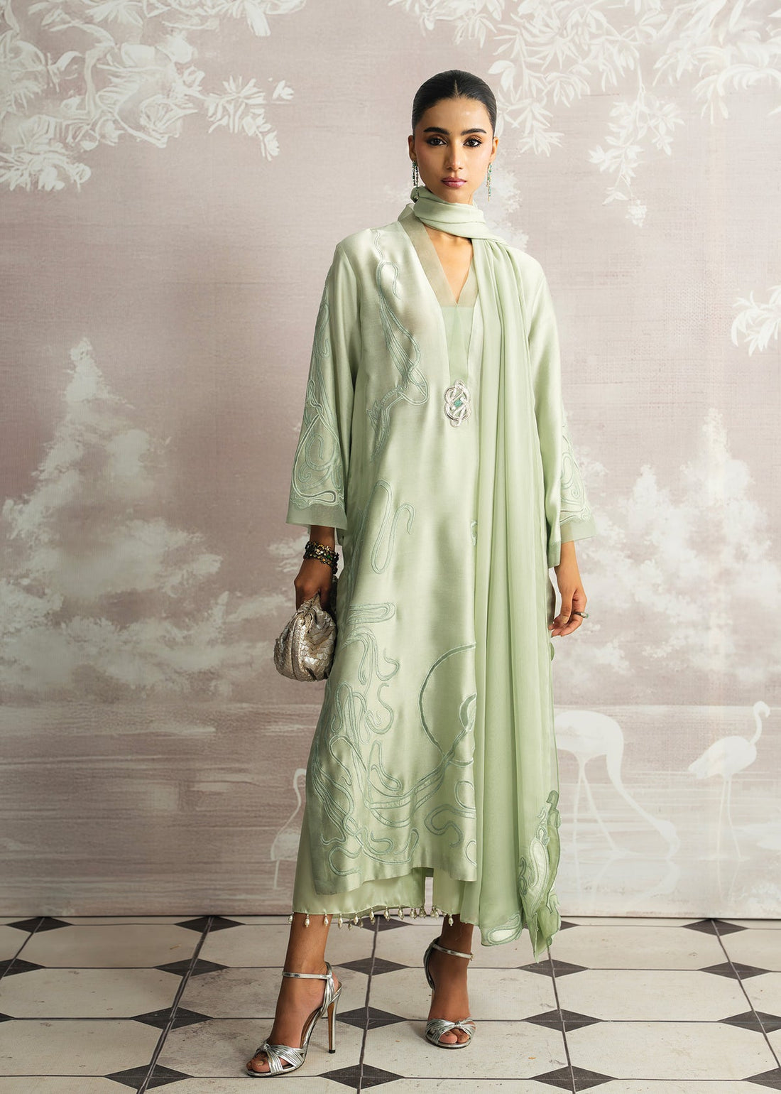 Graceful and effortlessly chic, Ruzan radiates in a serene sage green, where the richness of...