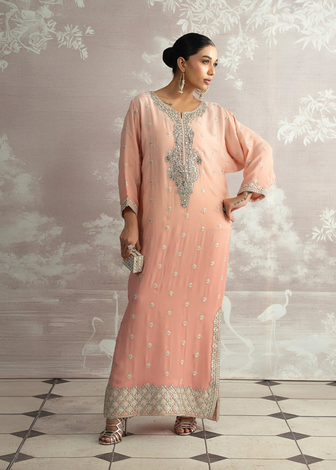 Delicately radiant, Mehrnaz unfolds in soft pink shades, exuding a feminine charm that’s both timeless...