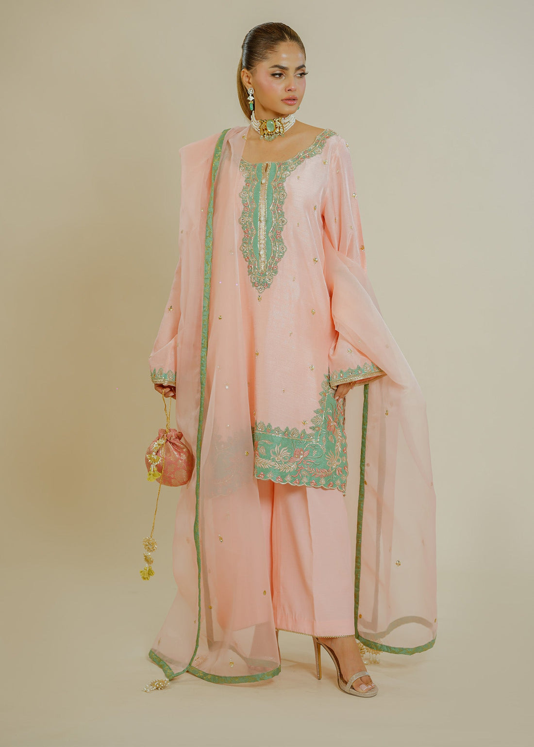 3 Piece = Shirt. Trouser, Dupatta Gender: FemaleAge Group: AdultFabric: Chiffon Colour: PinkDelivery:30 Working days from the...