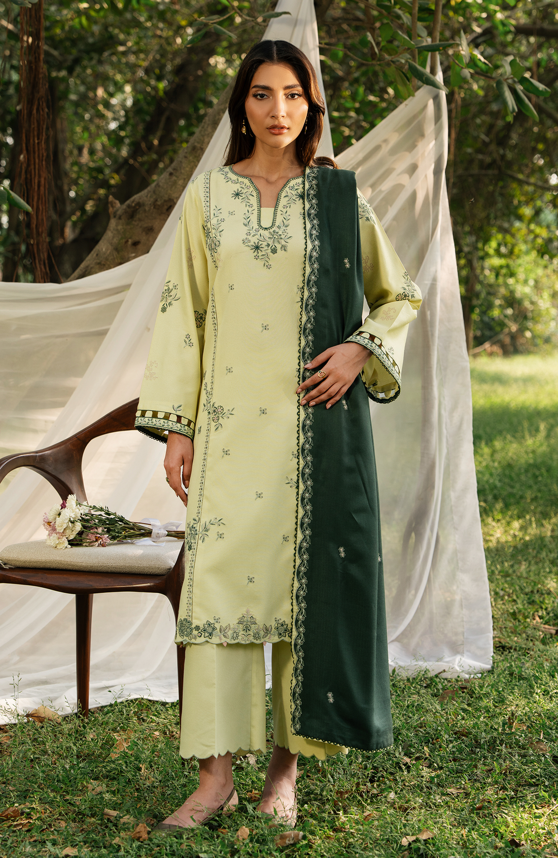 SHIRT:Embroidered Shirt Front (Slub Khaddar) 1.30 metersDyed Shirt Back (Slub Khaddar) 1.30 metersEmbroidered Sleeves (Slub...