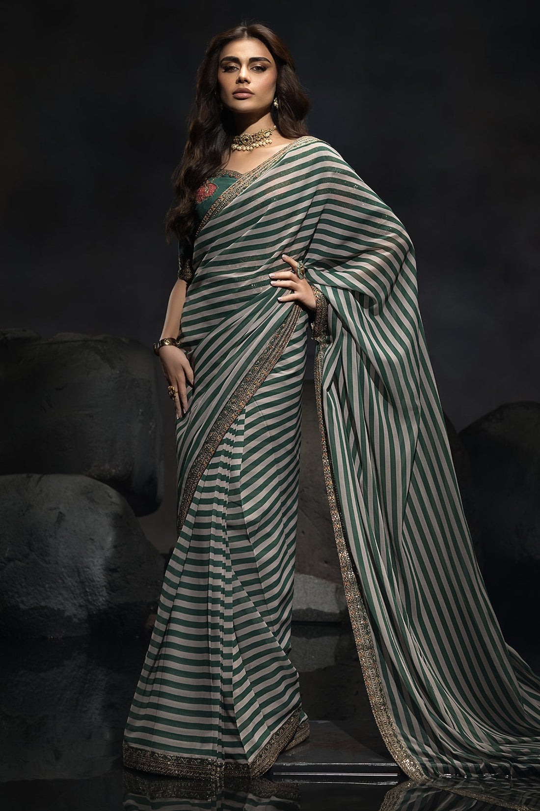 Embroidered and Printed with HAND WORK Raw Silk Blouse 1.50 MeterPrinted Chiffon Saree 8 MeterEmbroidered...