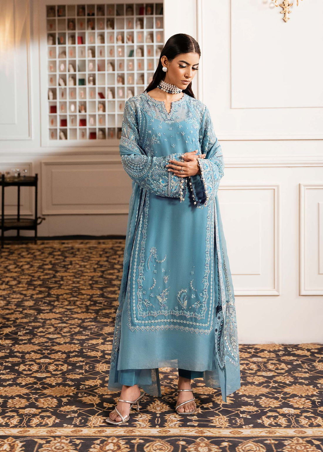 Farah Talib Aziz | Laani The Kaftan Edit | Amaris Sky-Blue Crepe