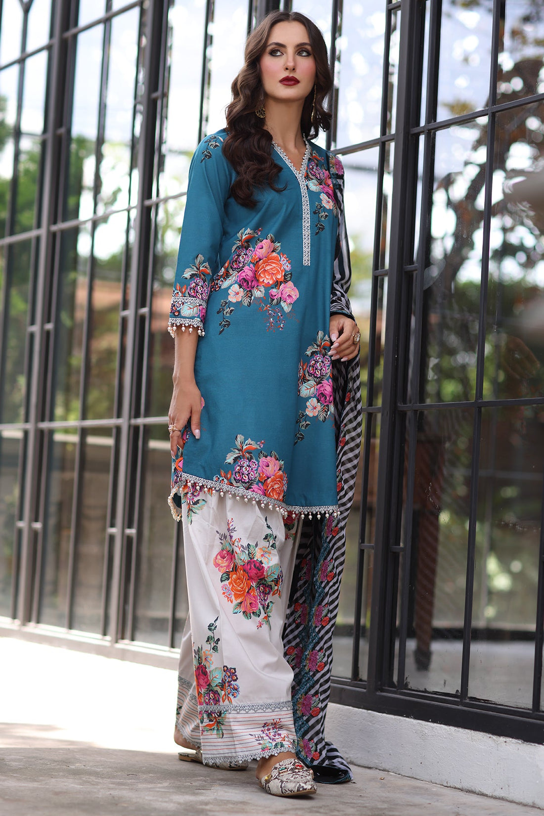 Farasha | Summer Weaves Embroidered Lawn | Teal Frost