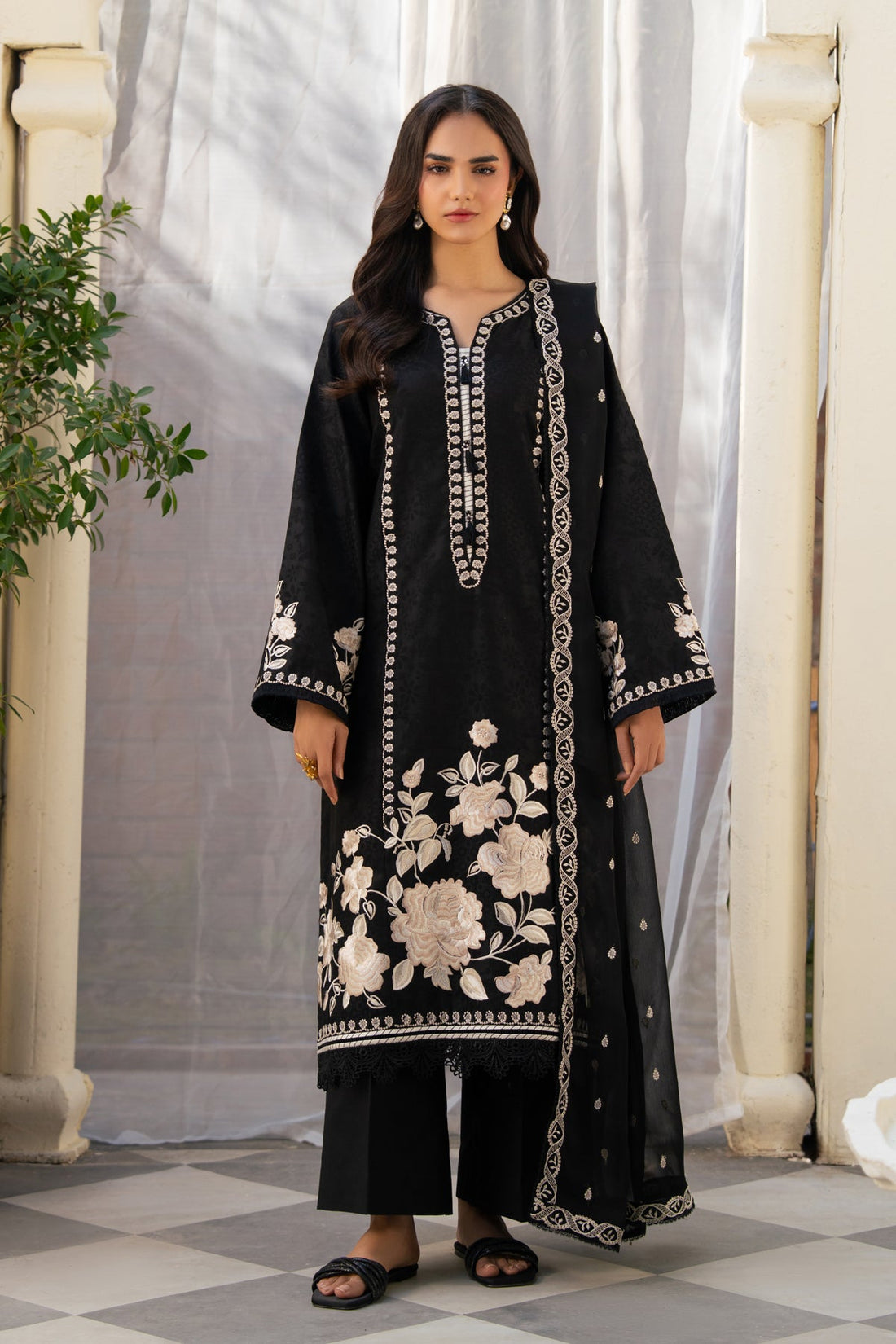 Embroidered Jacquard Lawn ShirtEmbroidered Chiffon DupattaDyed Cotton Trouser Delivery: 18 Working days from the date...