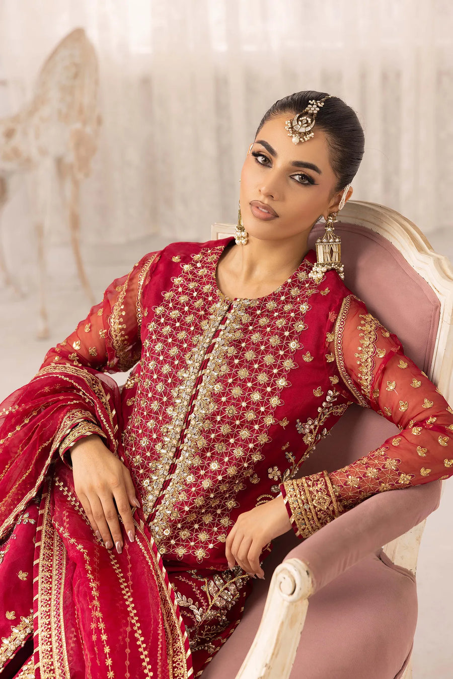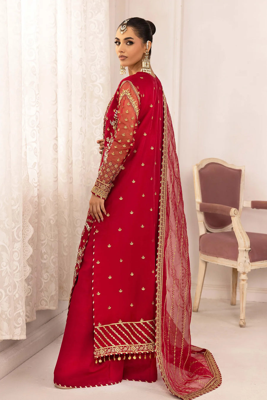 Given our Pakistani cultural background, we understand the significance of modesty. Therefore, we may make adjustments to certain design elements for modesty reasons. Examples of modifications include transforming low backs into traditionally styled regular backs, replacing drop shoulders with normal shoulders, concealing exposed stomachs, and attaching sleeves to sleeveless dresses.
