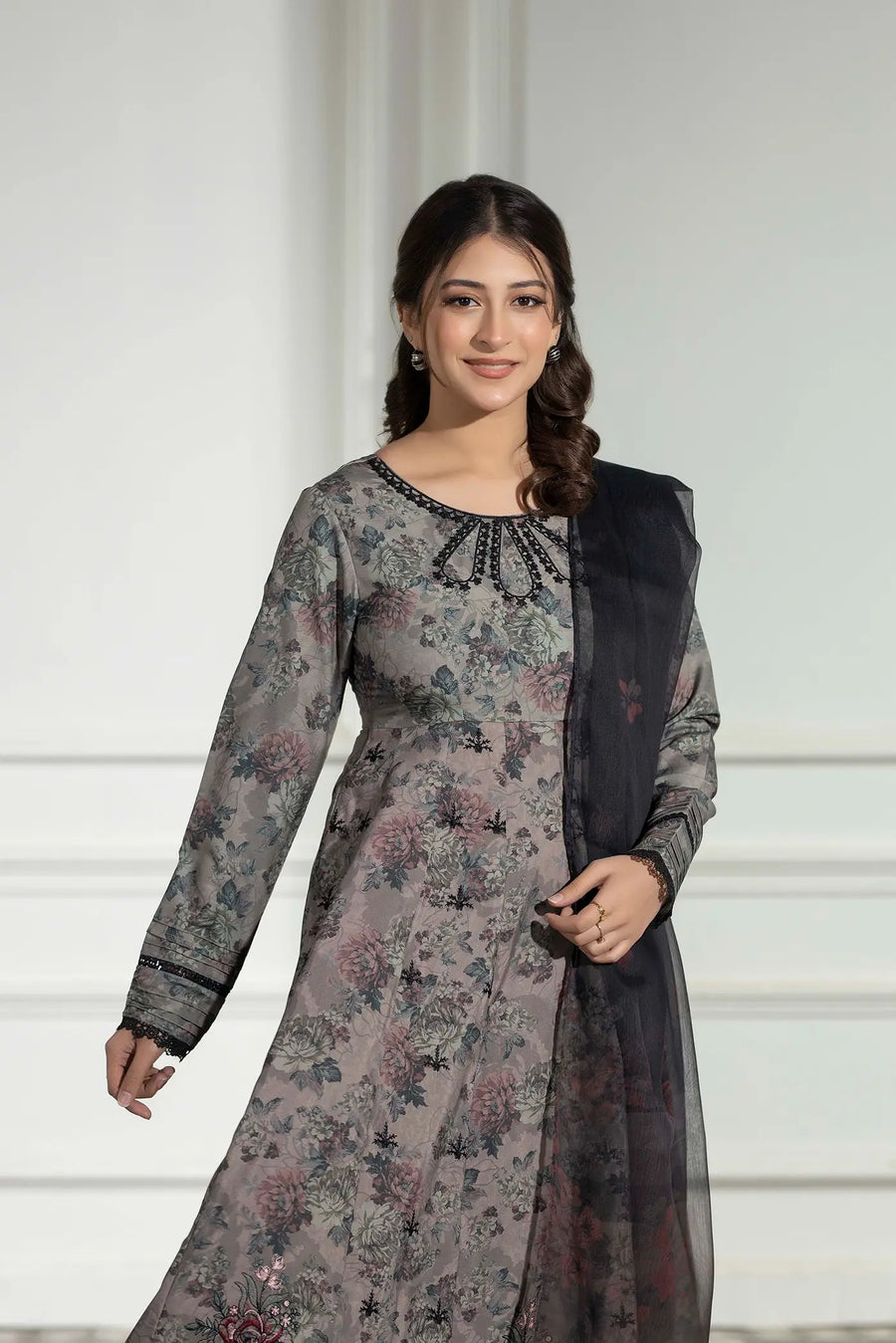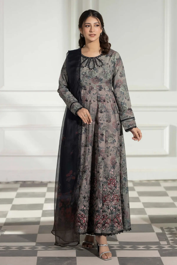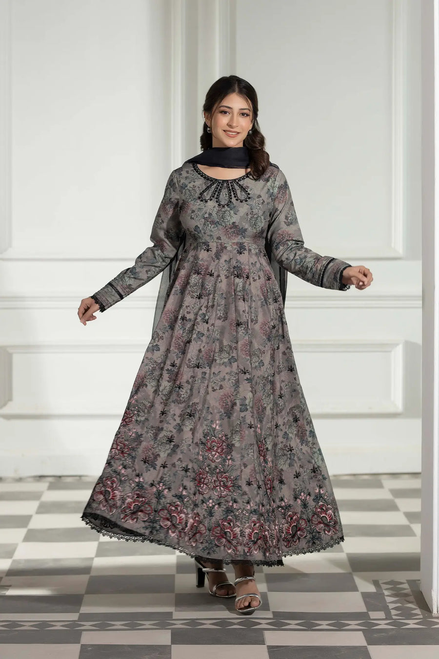 Unstitched Printed & Embroidered Slub Gown 1-PC