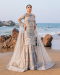 Introducing our masterpiece, net embroidered cutwork shirt, meticulously adorned with intricate handcrafted adda work. This opulent creation showcases a harmonious blend of naqshi, dabka, and Swarovski pearls,