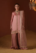 Paired with a flowing silk crushed sharara that adds soft volume and movement.