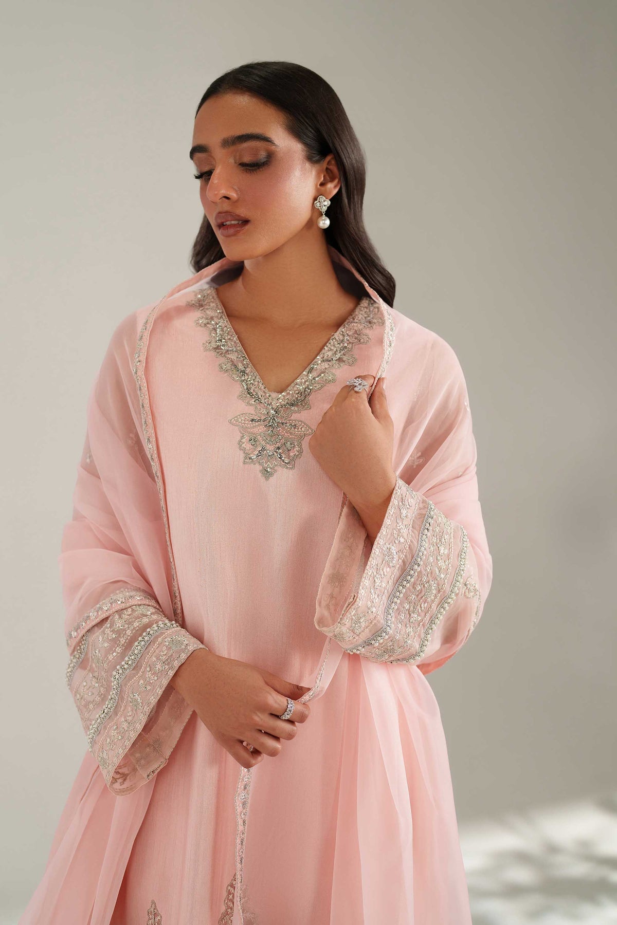 Given our Pakistani cultural background, we understand the significance of modesty. Therefore, we may make adjustments to certain design elements for modesty reasons. Examples of modifications include transforming low backs into traditionally styled regular backs, replacing drop shoulders with normal shoulders, concealing exposed stomachs, and attaching sleeves to sleeveless dresses.