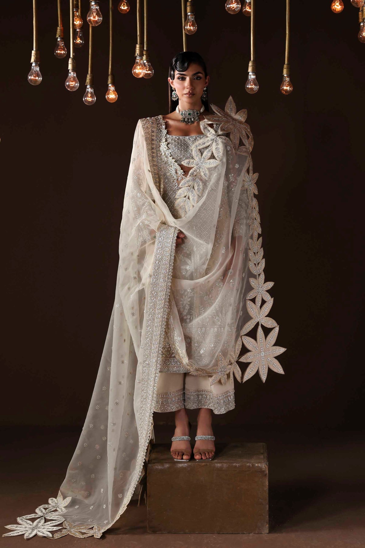 Organza Embroidered Hand-Embellished Front – 30"
