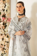 Make a statement with this soft white Dove outfit, adorned with gorgeous floral motifs and delicate sequins that add a subtle shimmer. The look is completed by a printed chiffon dupatta with contrasting embroidered borders, making this piece perfect for memorable occasions.