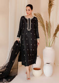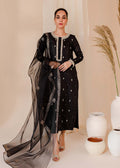 This graceful solid Black silk set is exquisitely designed to create an elegant look. It is delicately embellished with dainty white pearls, golden sequins, cut dana, pearls, and stones. Paired with a Block printed organza dupatta to complete the look!