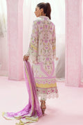 Long silhouette silk shirt in dreamy shades of lilac and mint featuring handcrafted zardozi neckline. The sleeves are adorned with handmade tassels and the hem of the shirt is enhanced with floral embroidered organza panel. The shirt is paired with floral silk contrasting dupatta.