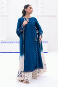 This teal and ivory ensemble is a masterpiece of design and craftsmanship. The pure raw silk teal blue angharka shirt features an a-symmetrical neckline and cutwork motifs, with detailed sleeves and hem. Accents in ivory and pink add a touch of elegance to the shirt. Paired with ivory culottes adorned with detailed embroidery and a cutwork hem, the outfit exudes sophistication and style. It comes with a teal blue and ivory dip-dye medium silk dupatta, featuring cutwork embroidered motifs on the edges, completing the look with a graceful finish.