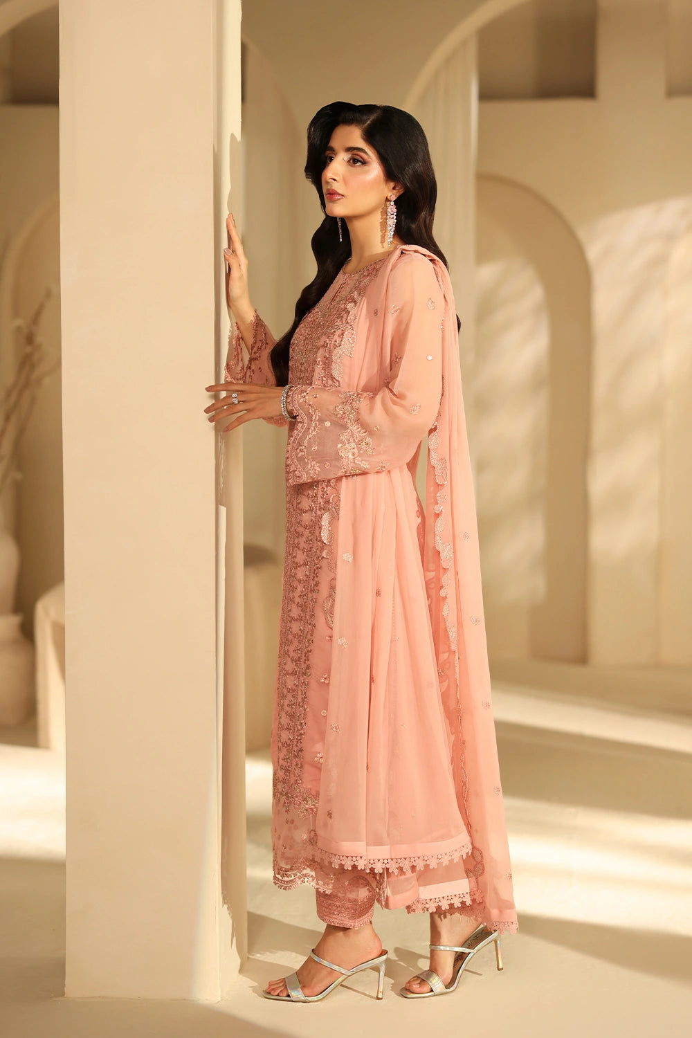 Given our Pakistani cultural background, we understand the significance of modesty. Therefore, we may make adjustments to certain design elements for modesty reasons. Examples of modifications include transforming low backs into traditionally styled regular backs, replacing drop shoulders with normal shoulders, concealing exposed stomachs, and attaching sleeves to sleeveless dresses.
