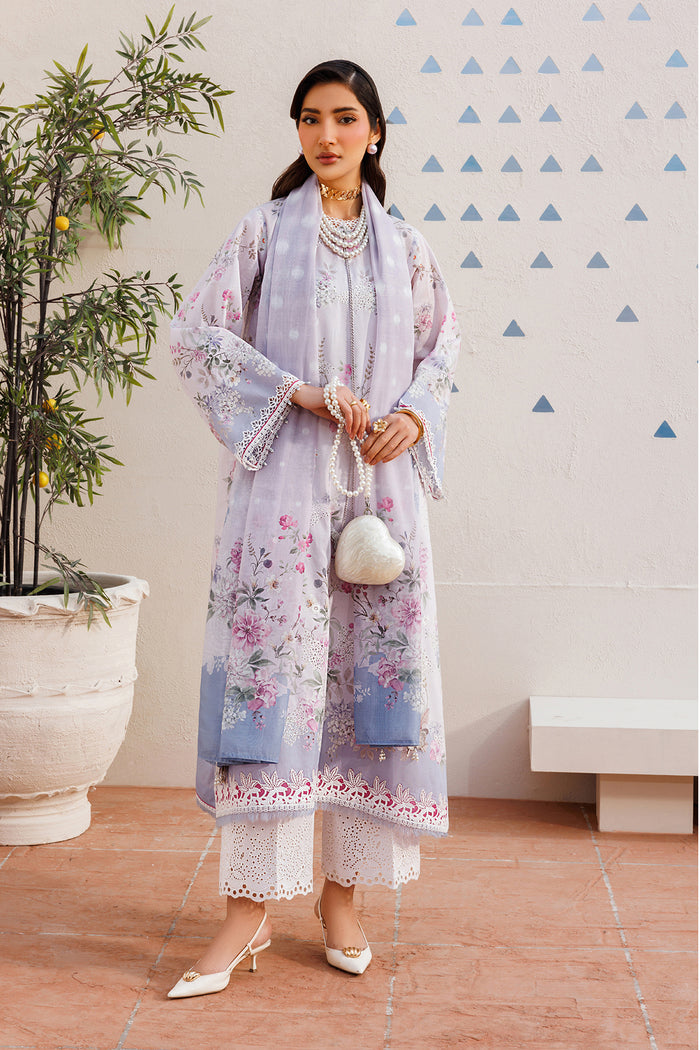 EMBROIDERED LAWN UF-4395 This premium three-piece unstitched lawn suit combines traditional craftsmanship with contemporary design. The collection features intricately embroidered digital printed lawn for the front panel, complemented by coordinating sleeves and back piece. Delicate organza neckline and sleeve borders showcase fine embroidery work, while matching front and back borders add sophisticated detailing. The ensemble includes a digital printed lawn dupatta and embroidered organza shirt motifs for enhanced visual appeal. Complete with embroidered cotton trouser fabric, this suit offers the perfect balance of comfort and elegance for formal and semi-formal occasions. Ideal for those who appreciate quality craftsmanship and refined aesthetics.