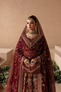 Paired with a heavily embroidered lehnga made from our luxurious raw silk. Artfully composed panels at front and back unveil a meticulous display of handwork. Details feature a blend of resham, dabka, naqshi, crystals, and more. Striking details display a finely embroidered belt at waist. This cascading lehnga comes with an attached can can.