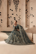 Artfully designed cascading lehnga made from our luxurious raw silk features an adjustable drawstring waist. Noteworthy details display fully composed embroidered panels at front and back comprising intricate handwork detailing. Striking material details withhold a blend of sheesha, resham, dabka, naqshi, pearls, crystals, and more. Finished with heavy raw silk borders, hand embroidered at hem. It comes with an attached can can.