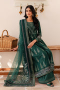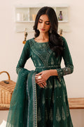 To complete the look, the heavy embroidered organza dupatta, embellished with applique patches on the corners, adds a graceful and sophisticated touch to the overall outfit.