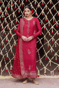 Make a bold statement with Heer, a deep-red raw silk long embroidered shirt featuring delicate crystal detailing and embroidered tassels on the neckline.