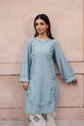 This elegant two piece ensemble features an embroidered karandi shirt with a refined round hem, showcasing intricate embroidery along the neckline and sleeves. The delicate threadwork adds depth and sophistication, while the soft texture of karandi offers warmth and comfort, making it ideal for the winter season.