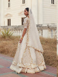 "The Ivory Princess" is more than just an outfit; it's a celebration of your inner radiance. This masterpiece of bridal fashion seamlessly blends the allure of both western and eastern glamour. Crafted from the finest pure organza, this ethereal ensemble is adorned with baroque gold embroidery, creating a captivating interplay of light and shadow.