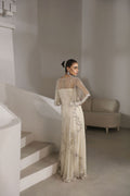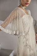 Imagine yourself gliding across the room, feeling like a dream. This exquisite gown, crafted from delicate net fabric, is more than just clothing; it's a masterpiece of artistry. Adorned with intricate hand embroidery and shimmering crystals and pearls, it exudes an aura of sophistication and luxury. The flowing silhouette moves with you effortlessly, creating a mesmerizing dance of light and shadow. You'll feel confident and beautiful in this gown, ready to make a lasting impression.