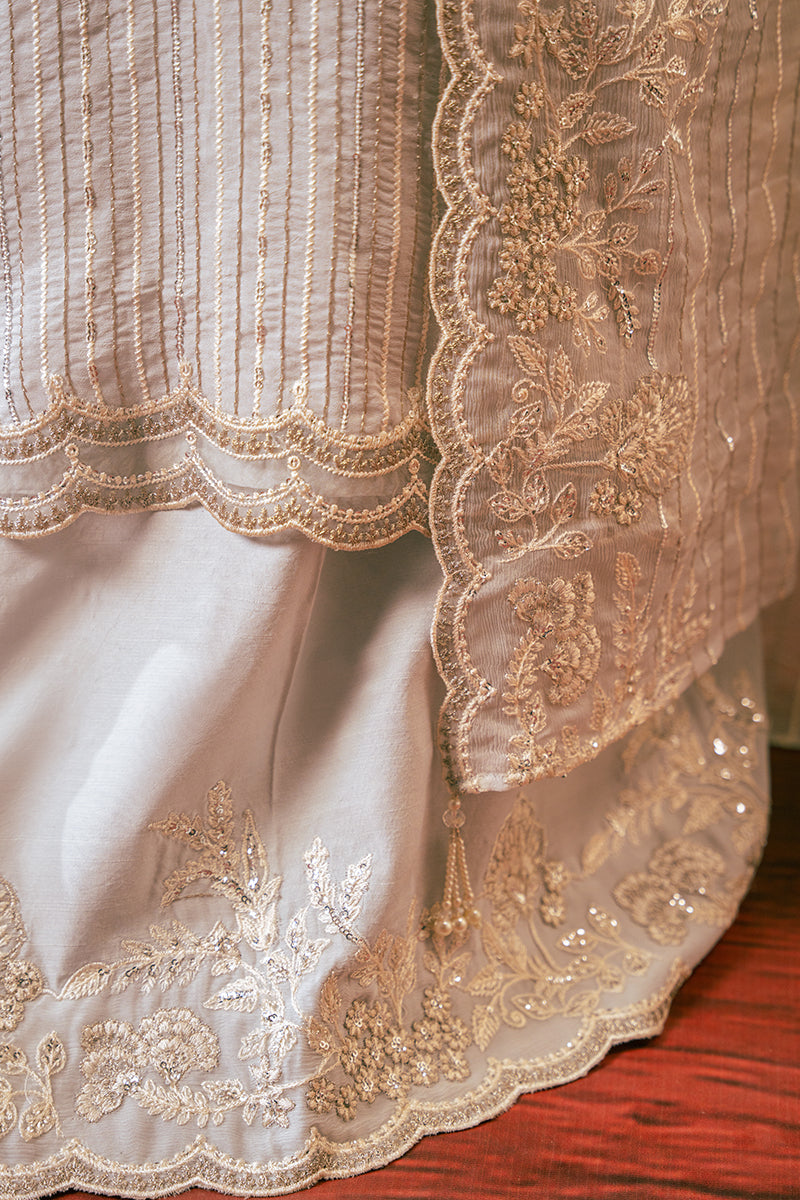 Given our Pakistani cultural background, we understand the significance of modesty. Therefore, we may make adjustments to certain design elements for modesty reasons. Examples of modifications include transforming low backs into traditionally styled regular backs, replacing drop shoulders with normal shoulders, concealing exposed stomachs, and attaching sleeves to sleeveless dresses.