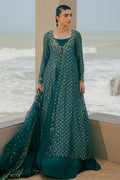 Indulge in luxury with our Green Spring 3-piece embroidered gown. The paneled front and sequin embroidery on the shirt exude elegance. The open jacket adds a touch of sophistication, with a crushed silk inner gown for ultimate comfort. The embroidered and embellished neckline and fitted sleeves with tassel detail complete the look. Complete it with the poly organza embroidered dupatta for a perfect finishing touch.