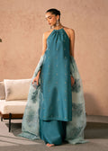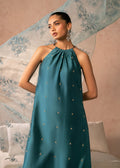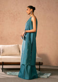 This outfit is a modern yet graceful traditional ensemble in a rich teal hue, blending minimalism with delicate detailing.