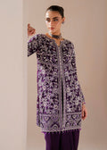 Deep enchanting purple that feels like dusk captured in fabric. It draws you in quietly, then holds you there. Aysel mirrors that allure with its front-open short shirt and fluid draped skirt, brought to life through intricate hand embellishments of crystals, pearls, Swarovski, and fine stones. Every detail is placed with intention, creating a soft shimmer that moves with grace. It’s elegance without effort the kind that speaks softly, but stays with you!