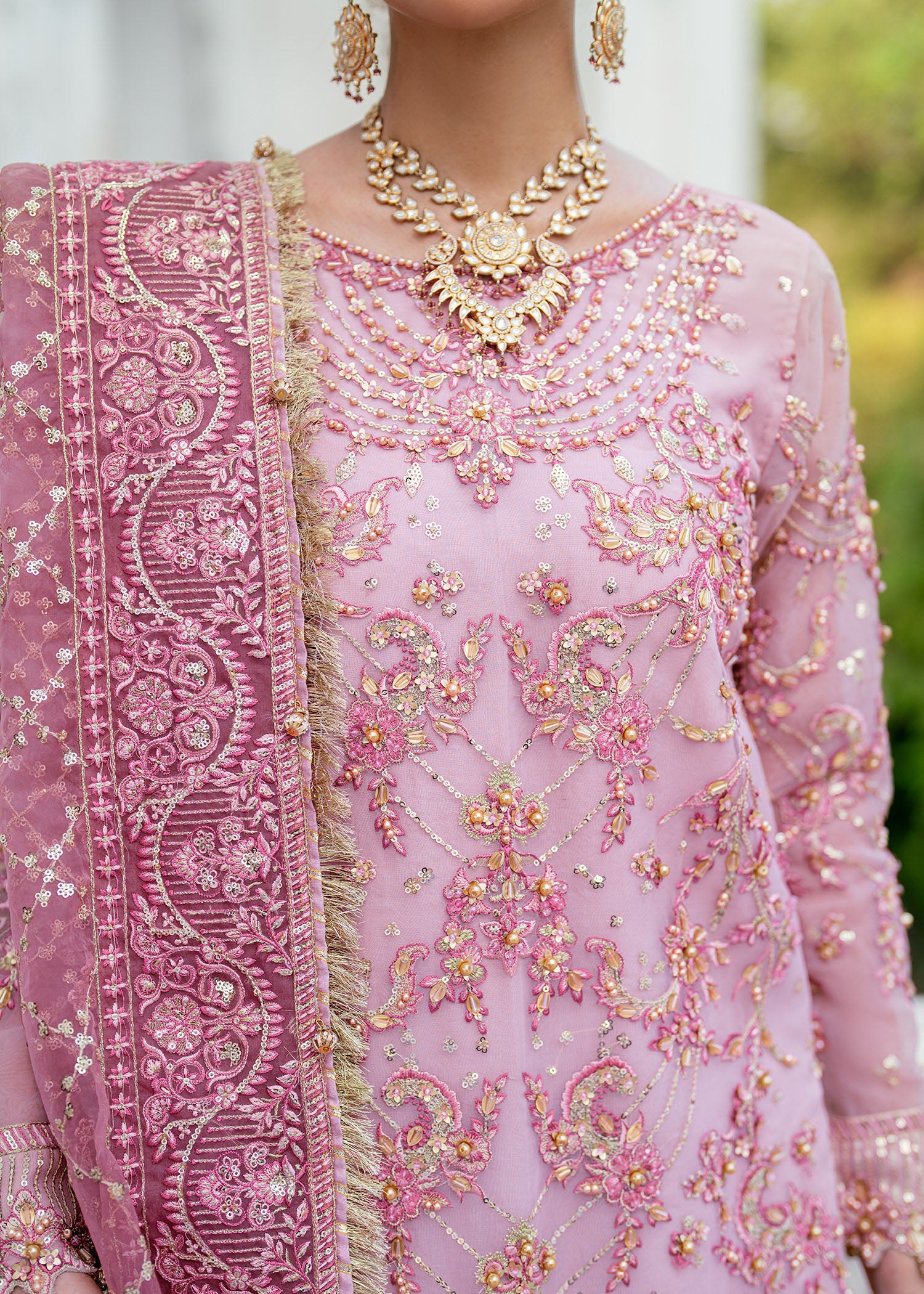 Step into sheer elegance with Gulnar – a captivating blend of modern luxury and timeless tradition. The organza shirt, with its soft cotton silk inner, creates a graceful silhouette, while the PK raw silk garara adds a touch of regal grandeur. Draped with a delicately flowing organza dupatta, Gulnar embodies sophistication and charm, making it the perfect choice for any opulent occasion. Let this enchanting ensemble elevate your style and leave a lasting impression.