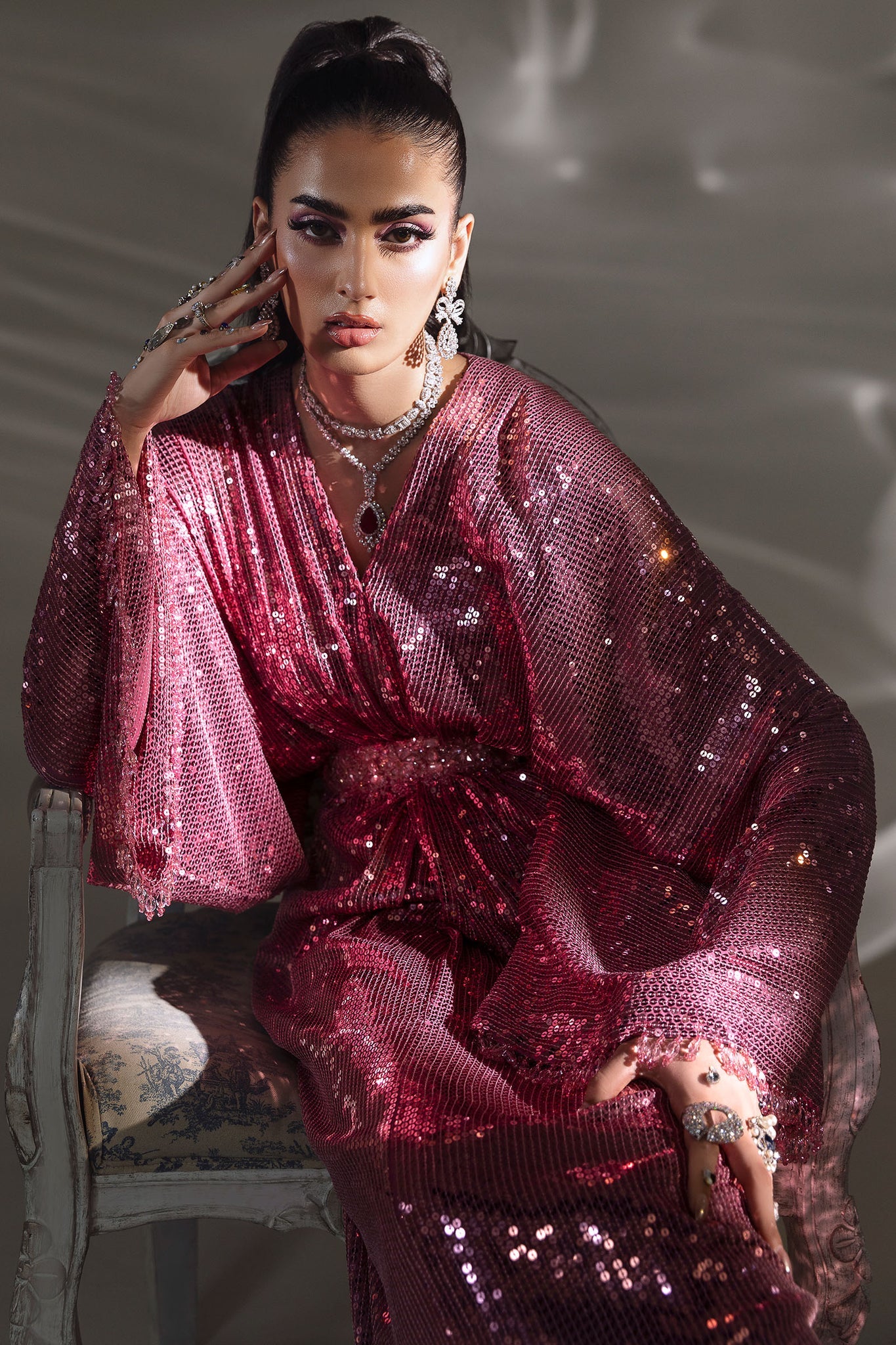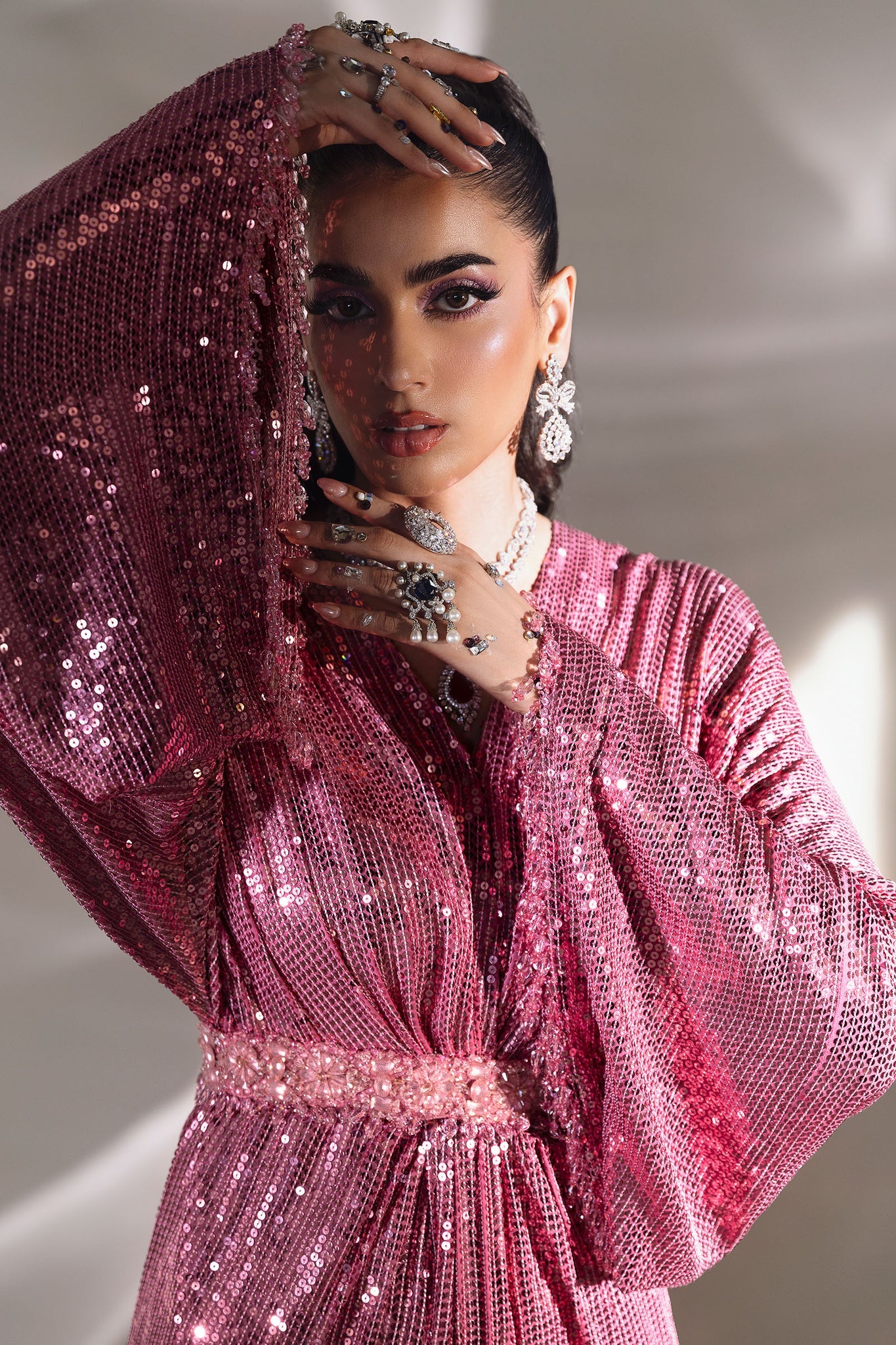 Step into a realm of unparalleled sophistication with Rosée, a magnificent rose pink sequined gown that glistens like morning dew kissed by the first light. Crafted for the discerning muse, this floor-length masterpiece is impeccably sculpted with an exquisitely embellished crystal belt—an emblem of Elan’s unparalleled artistry and signature opulence. Every shimmer and contour commands attention, elevating your presence to celestial heights. For those who aspire to captivate and embody timeless glamour, Rosée is the ultimate declaration of refined elegance and radiant allure.