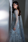 Cristal Etoile' epitomizes luxury with its luxuriously frosted tulle that delicately envelops the body. Intricately hand-embellished 3D floral appliqués highlight Élan's craftsmanship, adorned with pearls, scintillating stones, and iridescent crystals. Complemented by a delicate organza dupatta, adorned with elaborate borders, this ensemble radiates timeless elegance and sophistication.