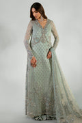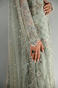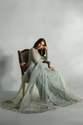 Élan Luxury Prêt presents Rêve de Givre—a vision of ice-blue elegance and transcendent beauty. This masterful creation, meticulously hand-embellished, is crafted from the finest ethereal fabrics in soft, airy hues that evoke pure sophistication. The enchanting long-shirt silhouette, adorned with opulent gold-chrome accents, is a testament to refined artistry. Each floral motif is a masterpiece, brought to life with luminous sequins, delicate gotta, lustrous pearls, and glistening crystals—every element woven together in a symphony of grandeur. Paired with a lavishly adorned net dupatta and sumptuous raw silk crushed pants, Rêve de Givre is more than an ensemble; it is a declaration of timeless elegance and supreme luxury. Perfectly poised for wedding festivities, it stands as the quintessential choice for those seeking an unforgettable statement of style.