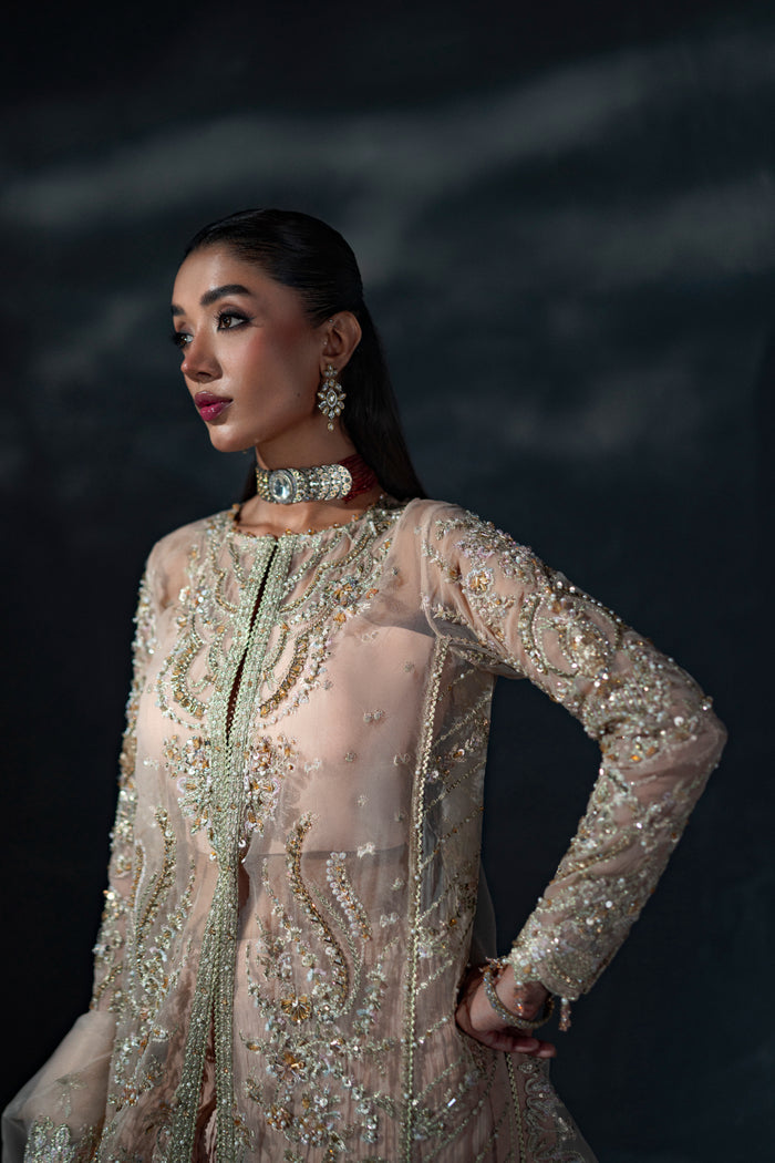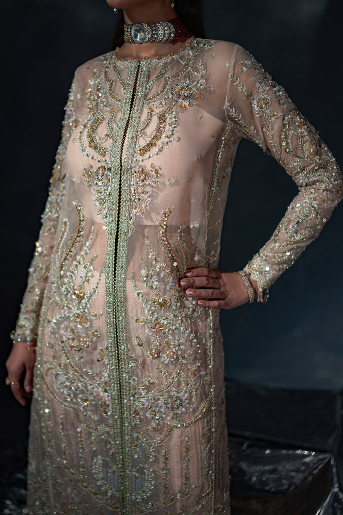 3. Embroidered & Hand Embellished Front Left Panel (Organza) – 1Pcs